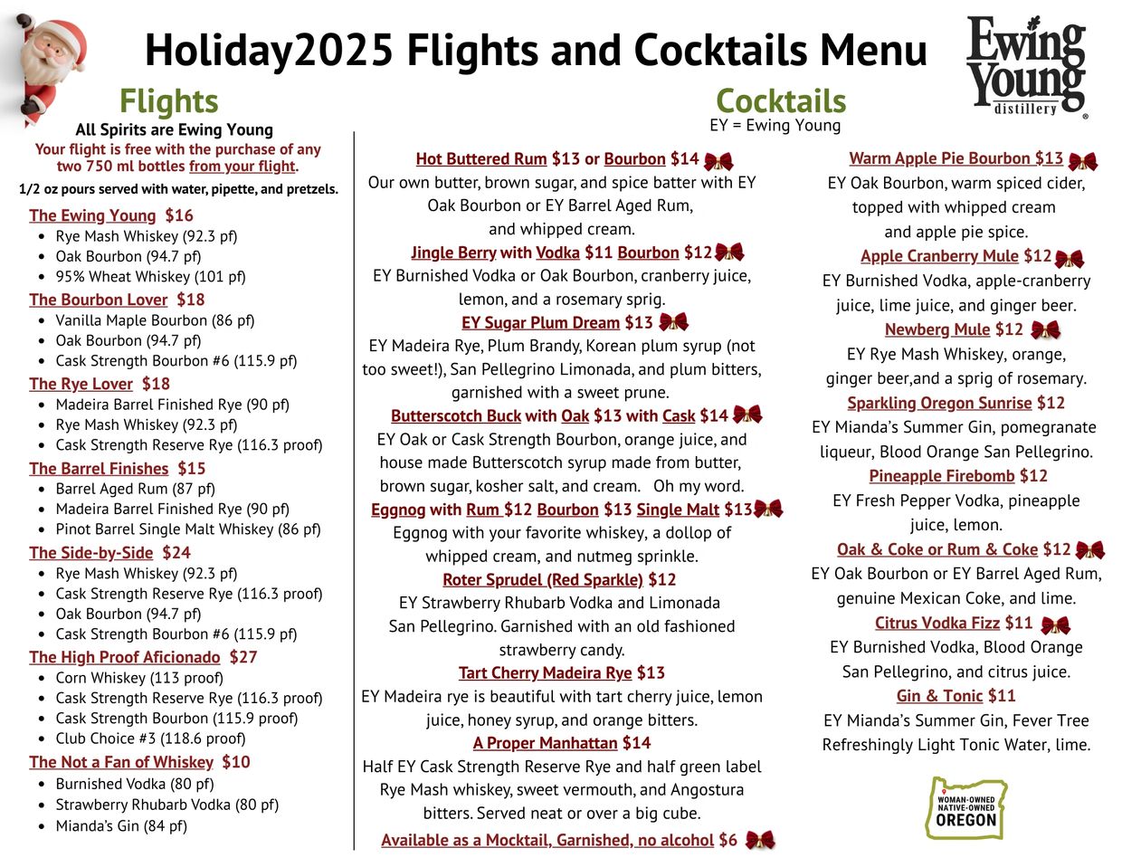 We offer a variety of flights and many wonderful cocktails that incorporate our spirits. And we have mini cocktail flights so you can try our new offerings!