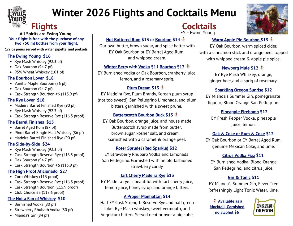 Ewing Young®, Ewing Young Distillery™, Ewing Young Spirits™, Ewing Young Farm™, Ewing Young Oak™, the E Young™ and Ewing Young™ signatures, American Pioneer Spirits™, American Pioneer Spirits at Ewing Young Farm™, and the American Pioneer Spirits bottle with wagon wheel image are trademarks of Oregon Brand Licensing LLC and are used under license to American Pioneer Spirits at Ewing Young Farm LLC and American Pioneer Spirits LLC.